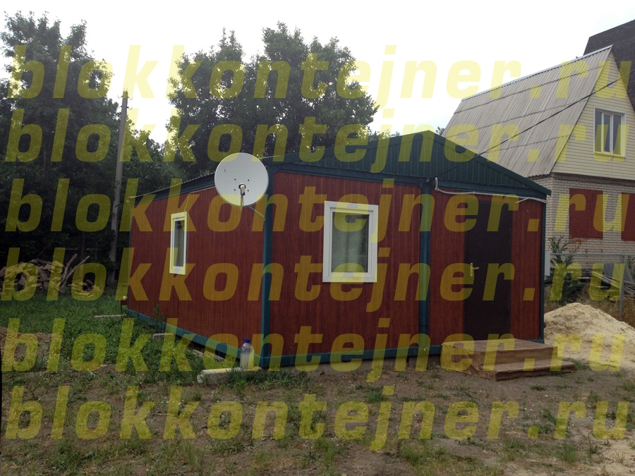По заказу клиента был построен модульный дачный домик из 2-х шт вагончиков-бытовок, с двускатной крышей в станице Мелиховской Ростовской области.